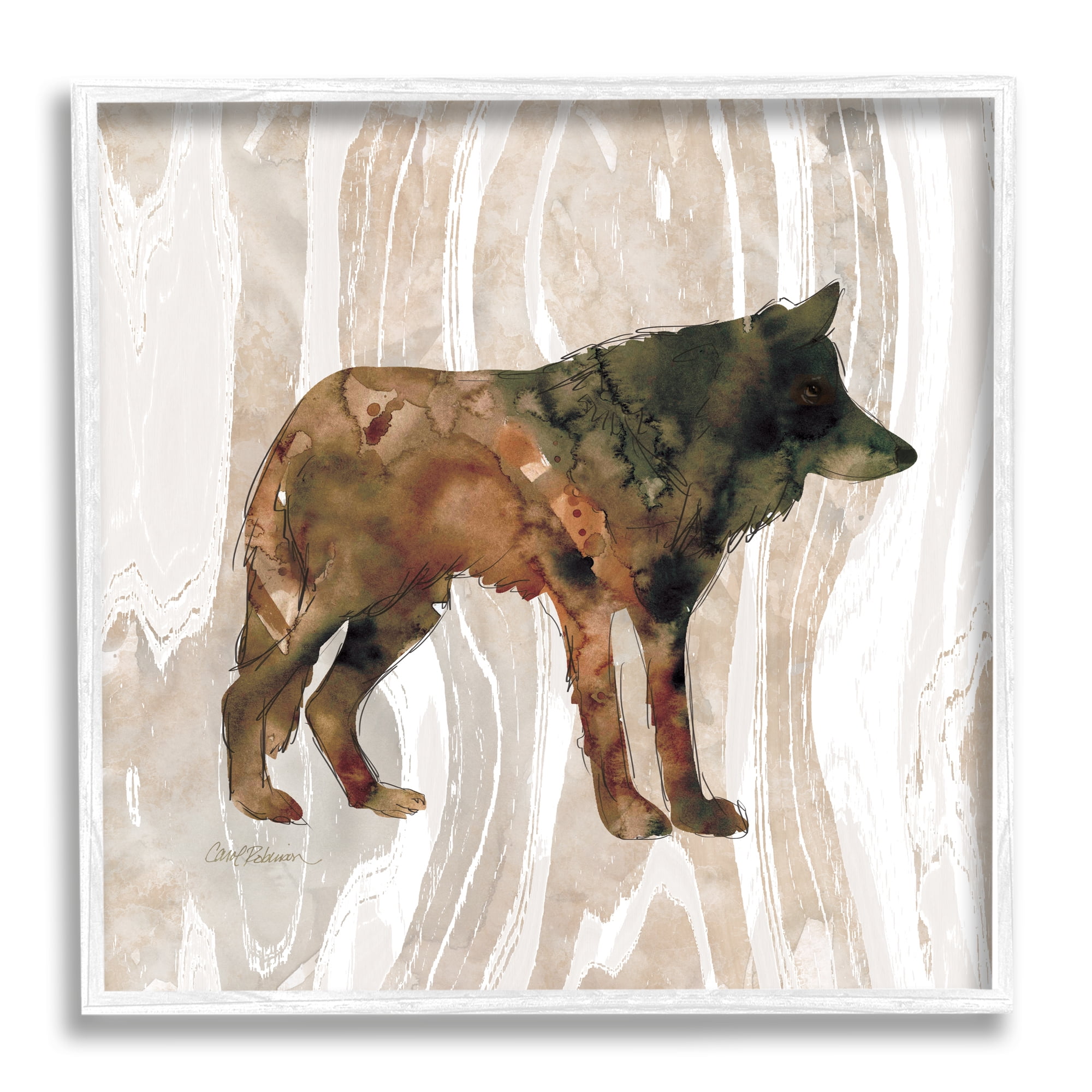 Stupell Industries Woodland Wolf Watercolor Silhouette Rustic Grain Pattern 12 X 12 Design By Carol Robinson Walmart Com